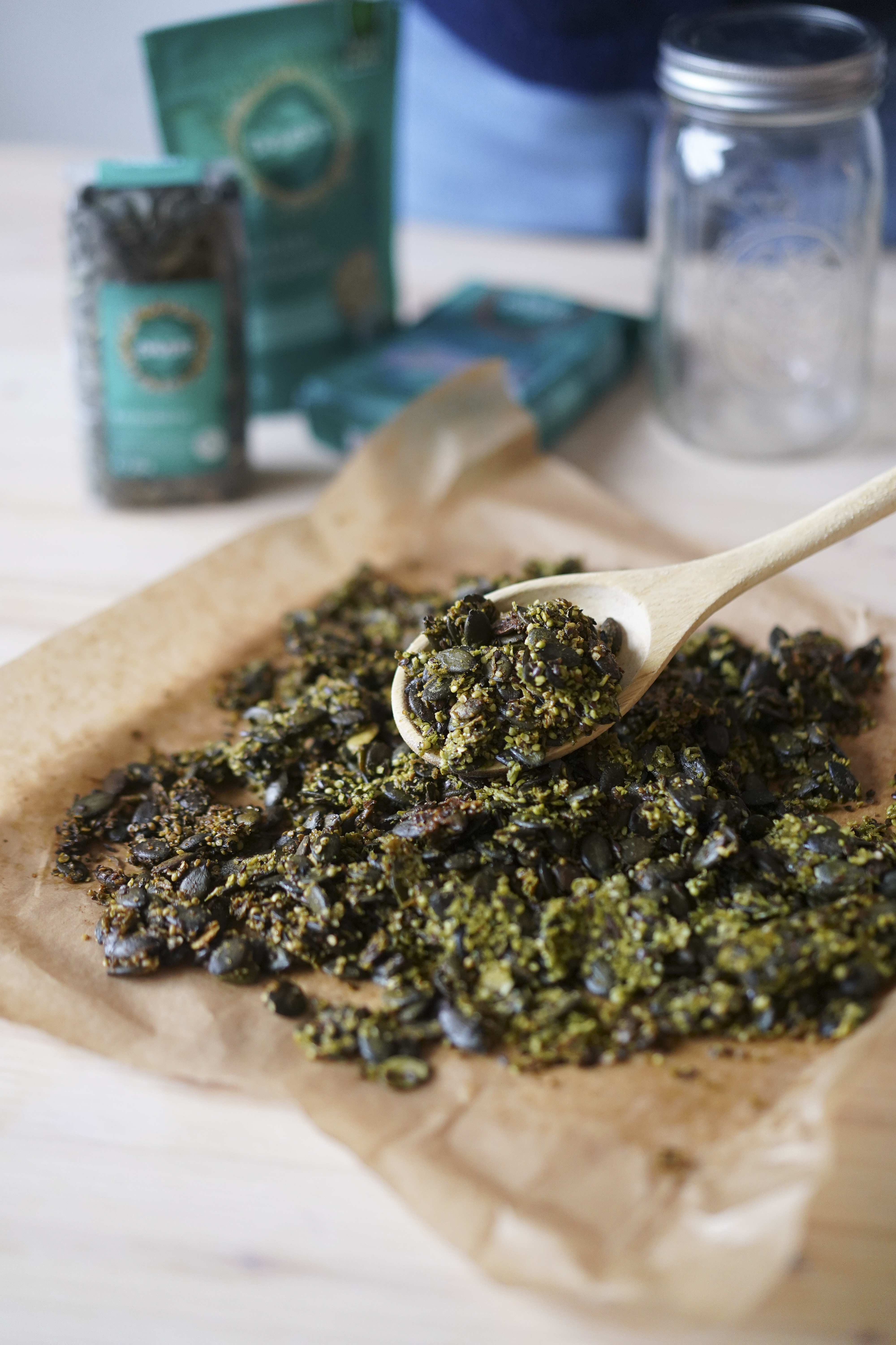 - Das Granola komplett auskühlen lassen und in Cluster brechen.