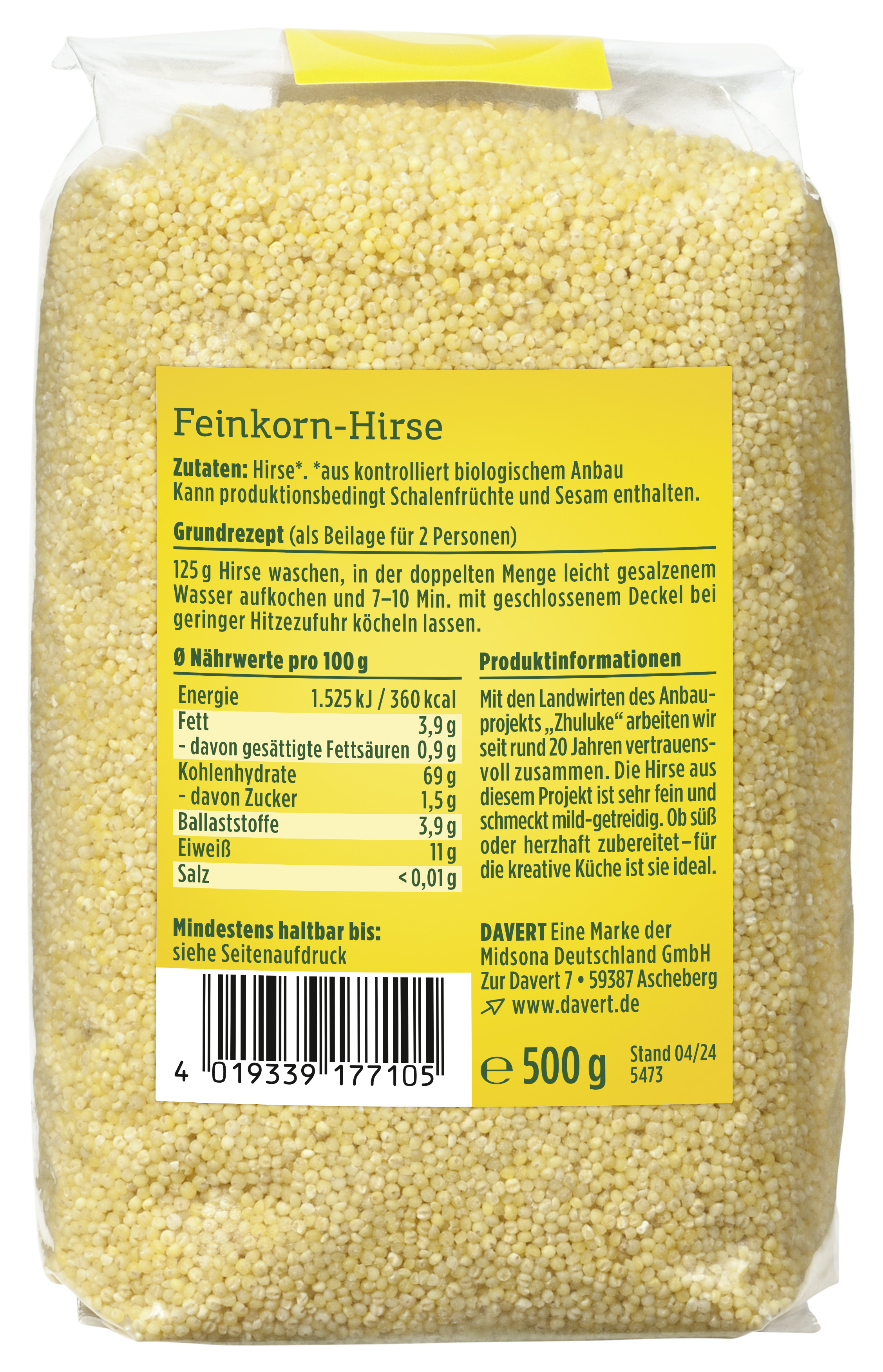 Mit den Landwirten des Anbauprojekts „Zhuluke“ arbeiten wir seit rund 20 Jahren vertrauensvoll zusammen. Die Hirse aus diesem Projekt ist sehr fein und schmeckt mild-getreidig. Ob süß oder herzhaft zubereitet – für die kreative Küche ist sie ideal.