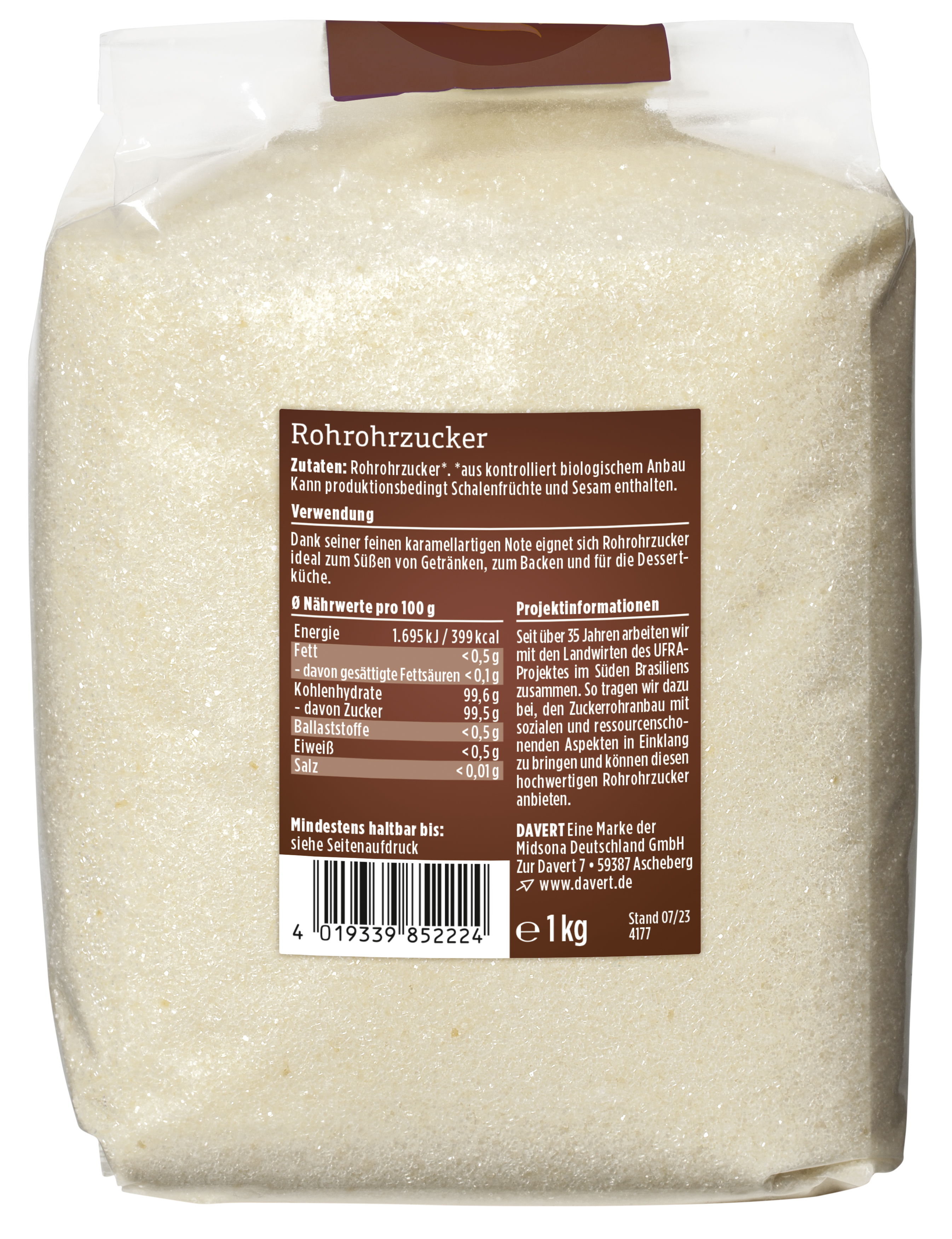 Seit über 35 Jahren arbeiten wir mit den Landwirten des UFRA-Projektes im Süden Brasiliens zusammen. So tragen wir dazu bei, den Zuckerrohranbau mit sozialen und ressourcenschonenden Aspekten in Einklang zu bringen und können diesen hochwertigen Rohrohrzucker anbieten.