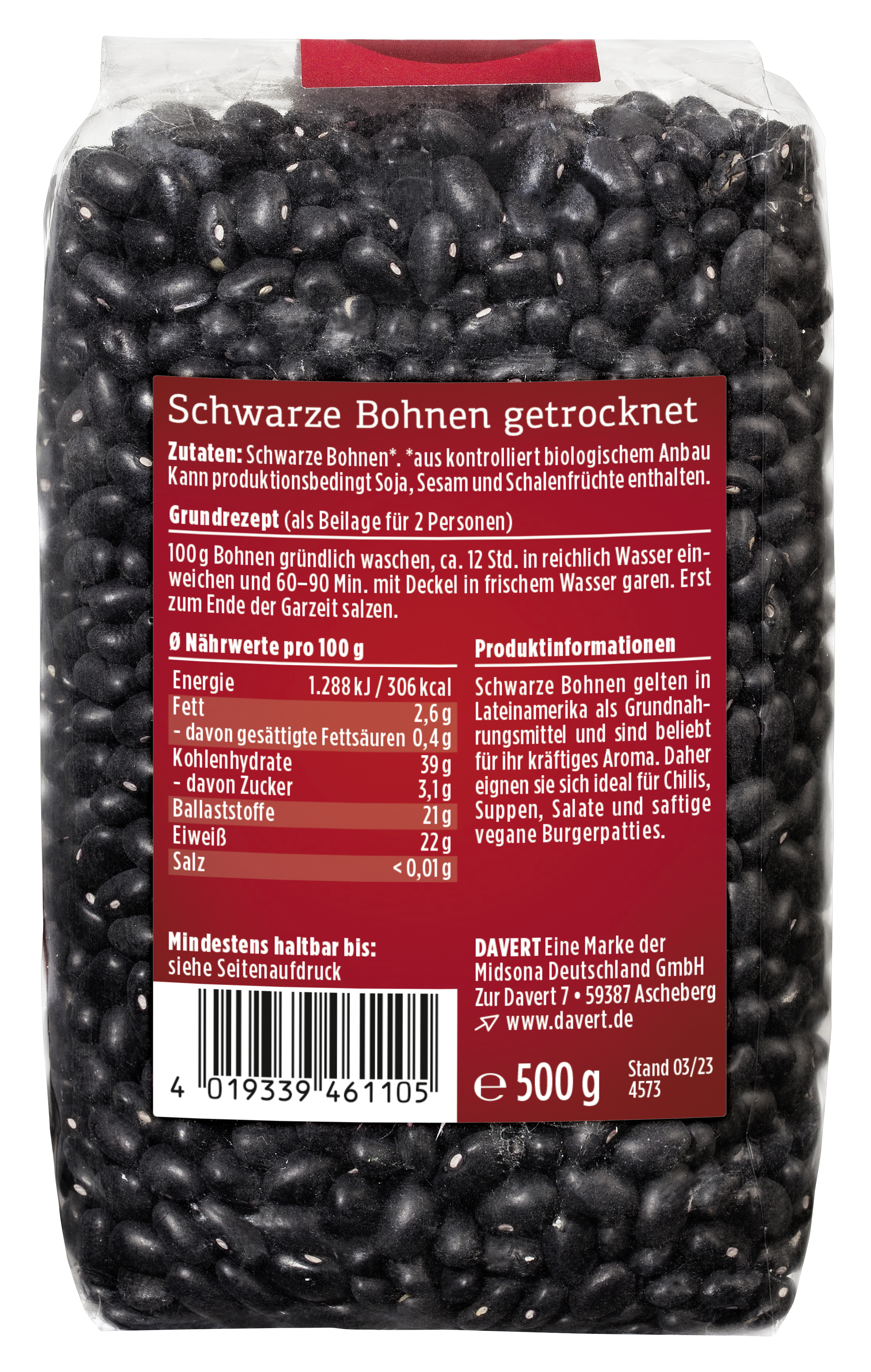 Schwarze Bohnen eignen sich in Lateinamerika als Grundnahrungsmittel und sin beliebt für ihr kräftiges Aroma. Daher eignen sie sich ideal für Chilis, Suppen, Salate und saftige vegane Burgerpatties.